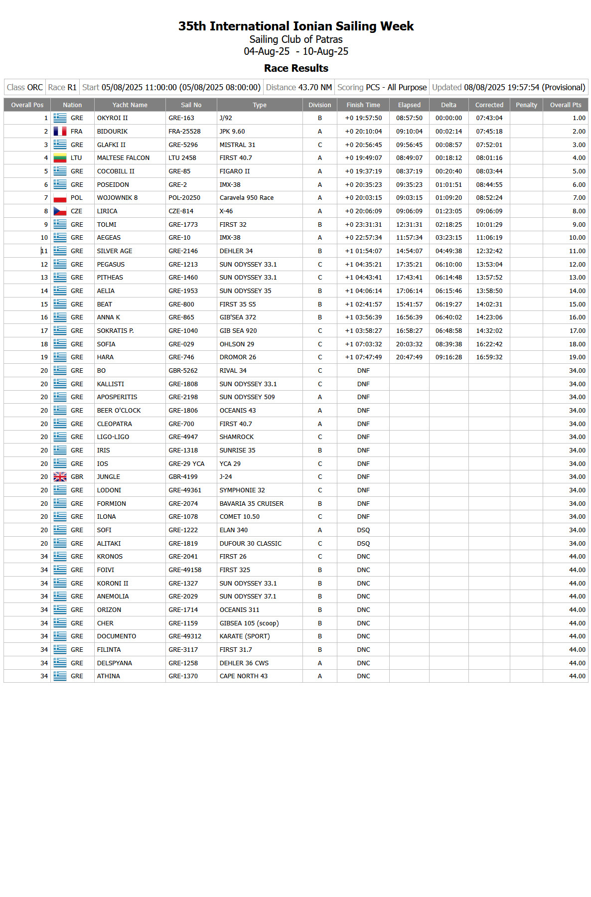 43,7 NM I.O. Πατρών Δ. Ελλάδος & Πελοποννήσου 9 33